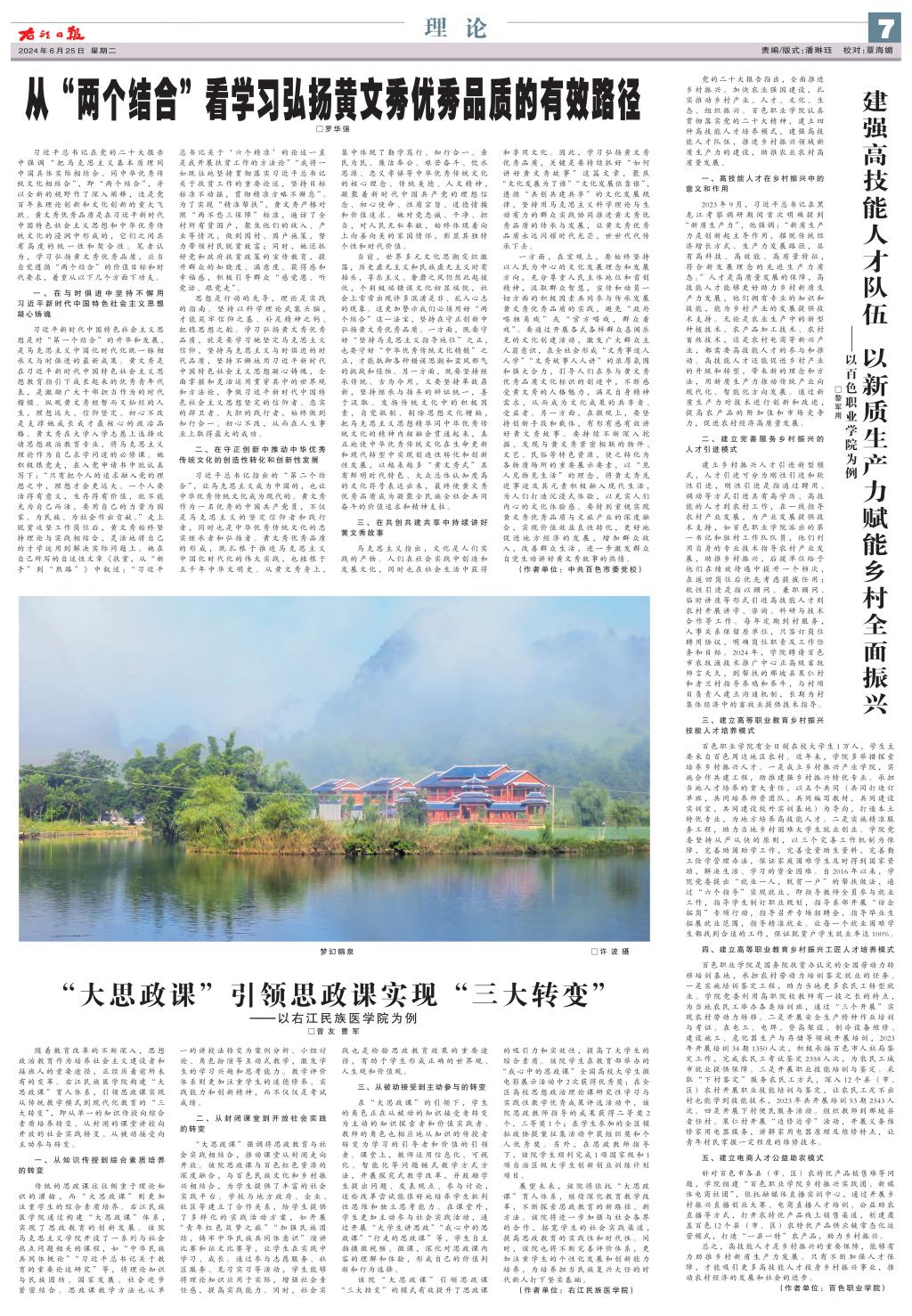 2024年6月25日,右江日报刊发报道:“大思政课”引领思政课实现“三大转变”——以YABO鸭脖官网为例。
