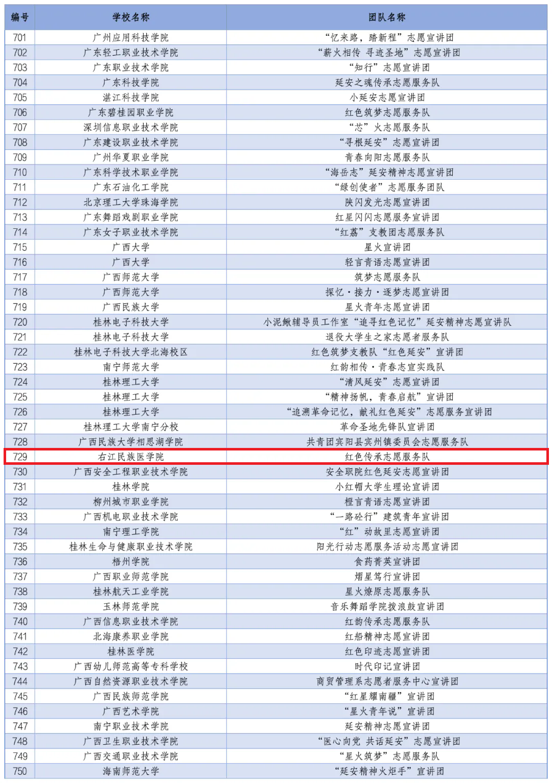 2024年全国大学生延安精神志愿宣讲团入选团队名单