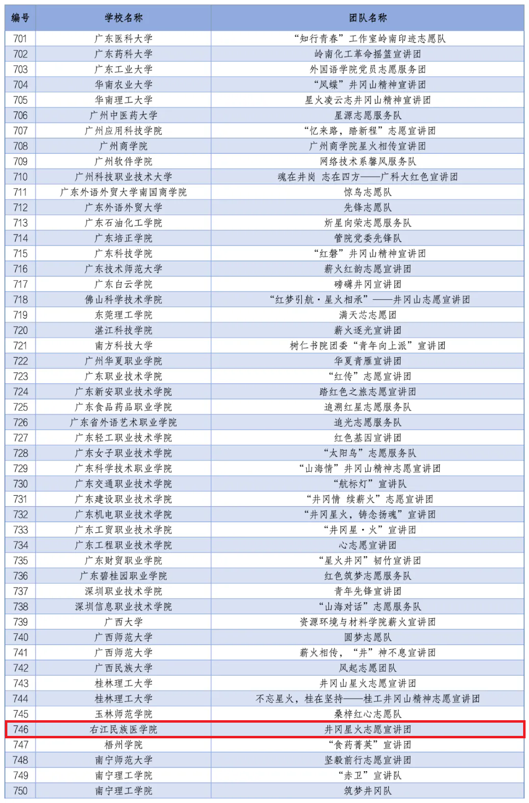 2024年全国大学生井冈山精神志愿宣讲团入选团队名单