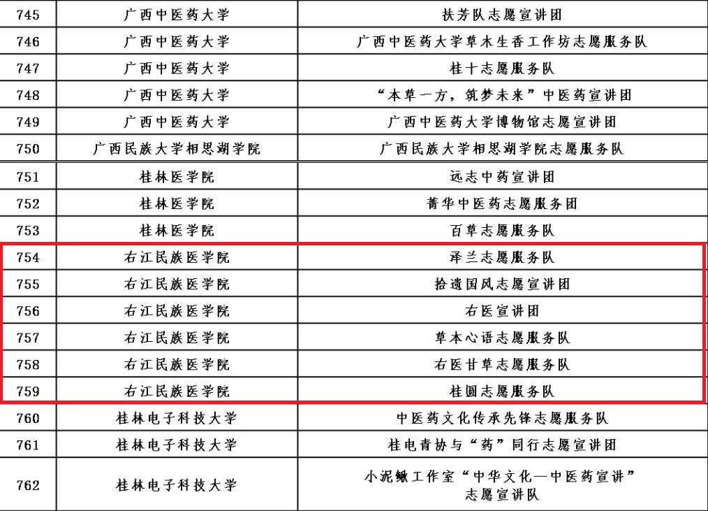 2024年全国大学生中医药志愿宣讲团入选团队的名单