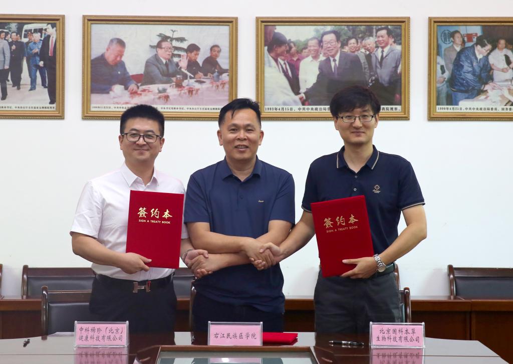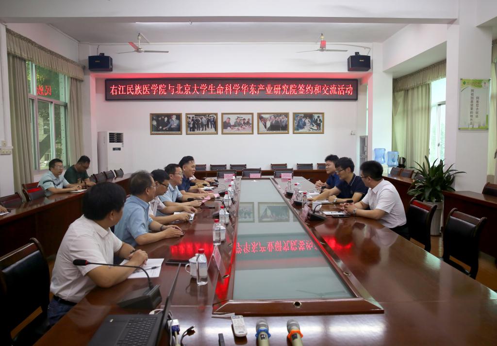 7月12日,YABO鸭脖官网与北京大学生命科学华东产业研究院合作签约仪式在学校图书馆二楼会议室顺利举行。鸭脖党委常委、副校长谭盛葵,北京大学生命科学华东产业研究院商业转化中心副主任闫硕,中科稀珍(北京)健康科技有限公司董事长任金威出席签约仪式,北京市相关企业负责人,鸭脖科技处、医学检验学院、药学院等相关负责人,生物医药与大健康现代产业学院代表,百色市科技局、市林科所相关负责人参加仪式。仪式由科技处处长黄忠仕主持。