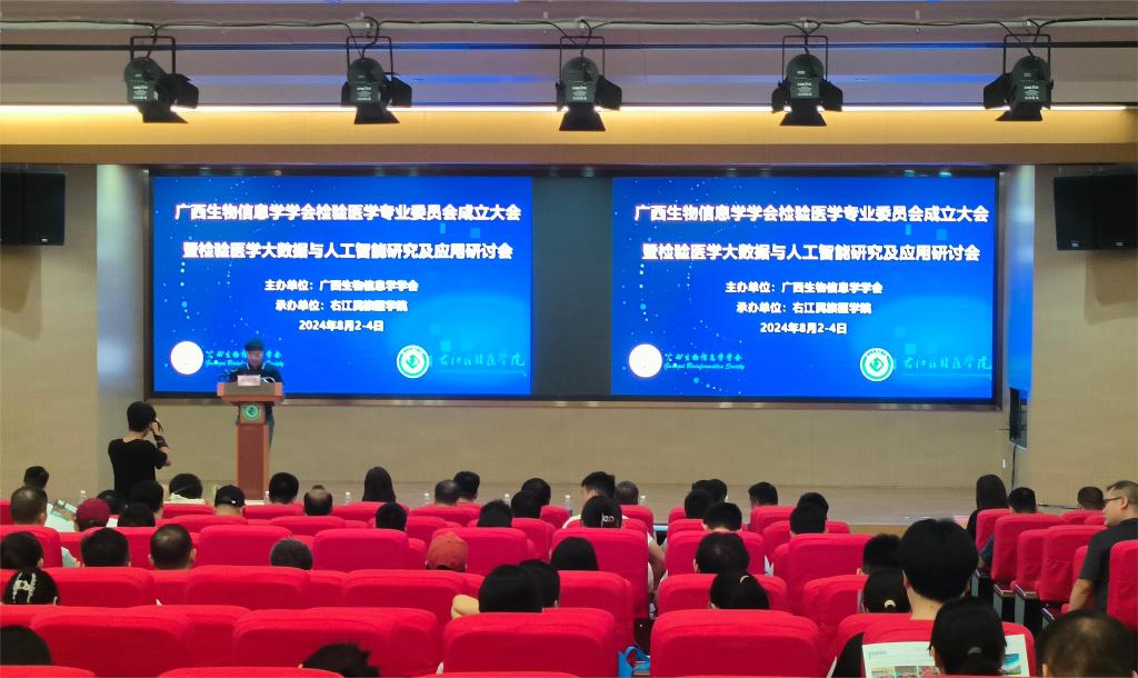 2024年8月2日,由鸭脖医学检验学院牵头,联合广西医科大学第一附属医院、广西壮族自治区人民医院、桂林医学院附属医院等多家医院、高校及企业共同发起成立的广西生物信息学学会检验医学专业委员会在百城校区国际会议中心顺利召开。鸭脖党委常委、副校长王俊利出席会议,来自全区高校、科研院所、医疗机构等多领域的专家学者齐聚一堂,共同见证了这一重要时刻。大会的成功召开,标志着检验医学与生物信息学领域融合发展迈入了新的阶段,为推动广西检验医学的科学研究与教育发展注入了新的活力。