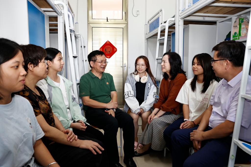 2024级新生入校将近一周时间,他们的学习生活情况如何?是否适应大学的校园环境?带着对新生的关切,9月13日下午,学校党委书记邓砚,党委副书记、校长李雪斌,党委副书记赵丽娟深入百东校区思源公寓,看望慰问新生。