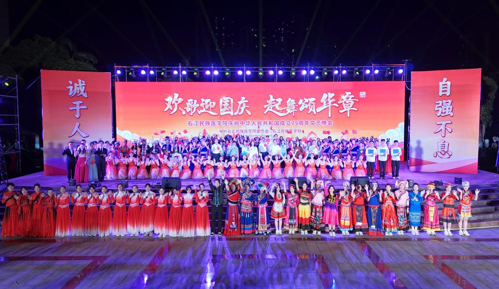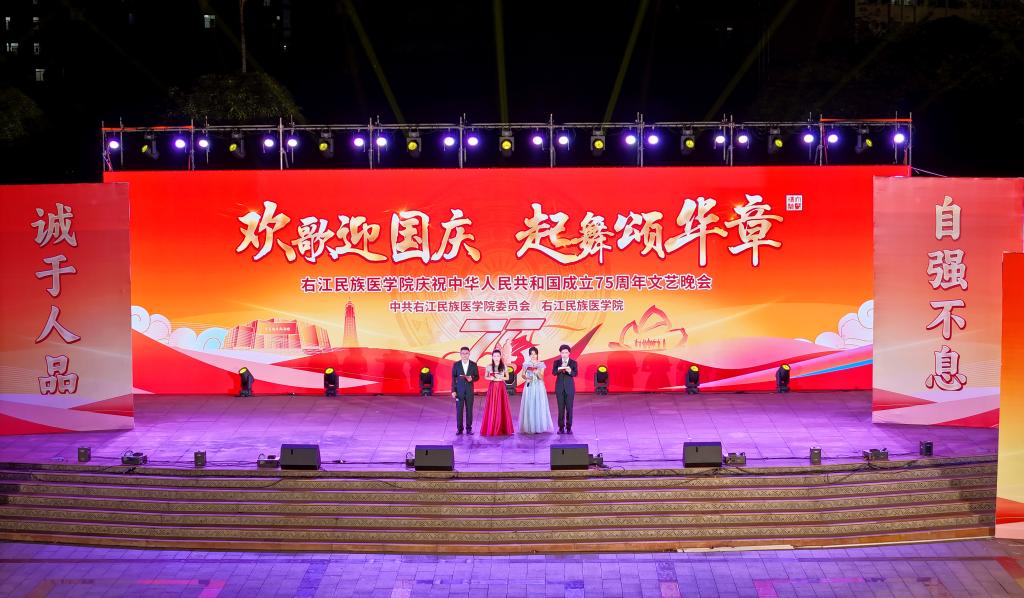 《欢迎您到壮乡来》欢快的旋律响起,那充满活力的节奏瞬间带动了全场的气氛。“欢迎您到壮乡来,壮家的美酒等您筛……”清脆悦耳的歌声中,洋溢着壮乡人民的热情好客与对美好生活的热爱;歌伴舞《红影之声,颂扬祖国》和舞蹈《大医精诚》则将晚会的主题升华,体现了医学学子们的使命与担当。
