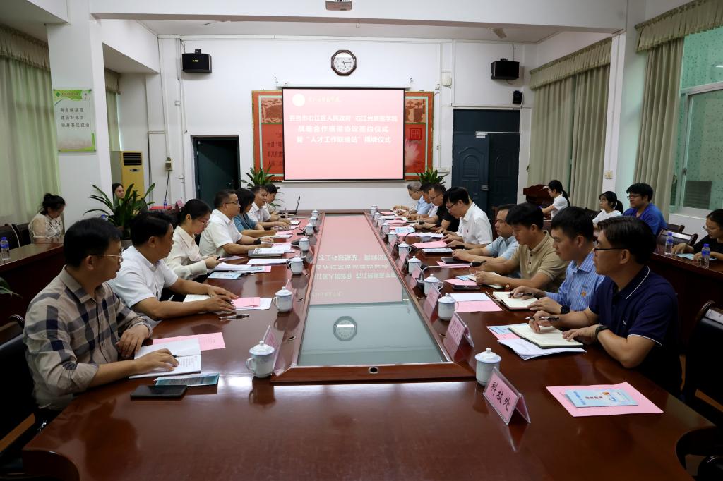 10月10日下午,百色市右江区人民政府与YABO鸭脖官网战略合作框架协议签约仪式暨“人才工作联络站”揭牌仪式在鸭脖图书馆二楼会议室举行。学校党委常委、副校长解继胜,右江区委常委、组织部部长黄锋,右江区人民政府副区长周建华出席仪式,学校及右江区相关部门负责人参加仪式。