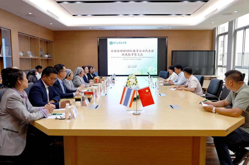 10月15日,泰国SD国际教育公司代表团一行莅临鸭脖进行考察交流,深入了解鸭脖的教育资源、办学理念及国际合作情况,探讨双方在人才培养、师资队伍建设等领域的合作。