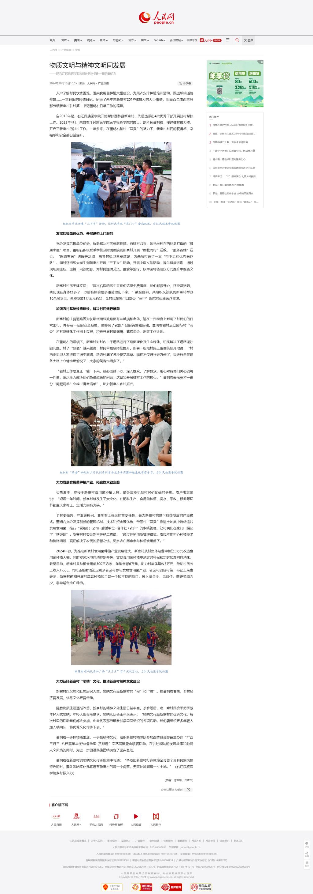 2024年10月16日,人民网以《物质文明与精神文明同发展——记YABO鸭脖官网新寨村驻村第一书记董明右》为题,报道鸭脖新寨村驻村第一书记董明右开展乡村振兴工作事迹。