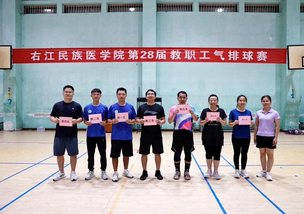经过激烈的角逐,体育1队在比赛中荣获第一名,体育2队获得第二名,财务处获得第三名,党群1队获得第四名,基础1队获得第五名,护理学院1队获得第六名,信技中心获得第七名,勇敢牛牛队获得第八名。工会副主席黄蔚霞分别为获奖队伍颁奖。