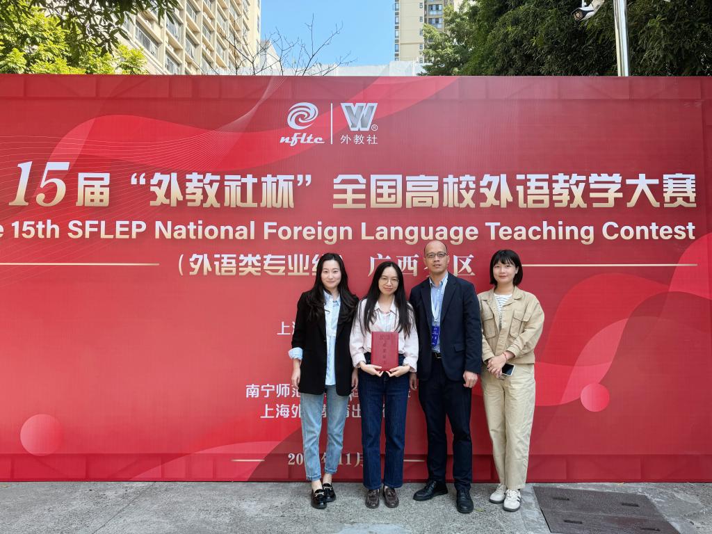 第十五届“外教社杯”全国高校外语教学大赛广西赛区决赛于2024年11月10日在南宁师范大学圆满落幕。鸭脖语言文化学院青年教师陈思琦与广西21所高校的参赛者同台竞技,经过复赛(授课)和决赛(说课)两轮激烈角逐,斩获英语专业组一等奖。这是鸭脖在该项赛事上的一次突破,也刷新了参赛历史最好成绩!