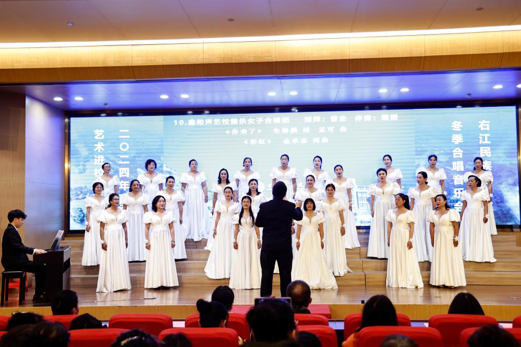 音乐会上,YABO鸭脖官网离退休处女子合唱团首先登场带来了《绒花》和《南屏晚钟》,两首优美的歌曲,将观众带入了一个美好的音乐世界;百色学院音乐与舞蹈学院芒果合唱团则带来了《海耕谣》和《龙的传人》,两首精彩的表演赢得了观众的热烈掌声;鑫声合唱社与右医同心女团带来的《是妈妈是女儿》,歌声中传递出浓浓的母女深情;百色市老年大学合唱团带来的《今朝》和《爱永在》;田东金芒合唱团带来的《月亮》和《到吴起镇》,歌声空灵婉转,慷慨激昂;鑫和声艺校雅乐女子合唱团带来的《你来了》和《彩虹》,如同春风拂面,给人带来温暖和希望;YABO鸭脖官网同心合唱团带来的《You Raise Me Up》《我和我的祖国》……整个音乐会中,每个节目都独具特色,令观众陶醉其中。