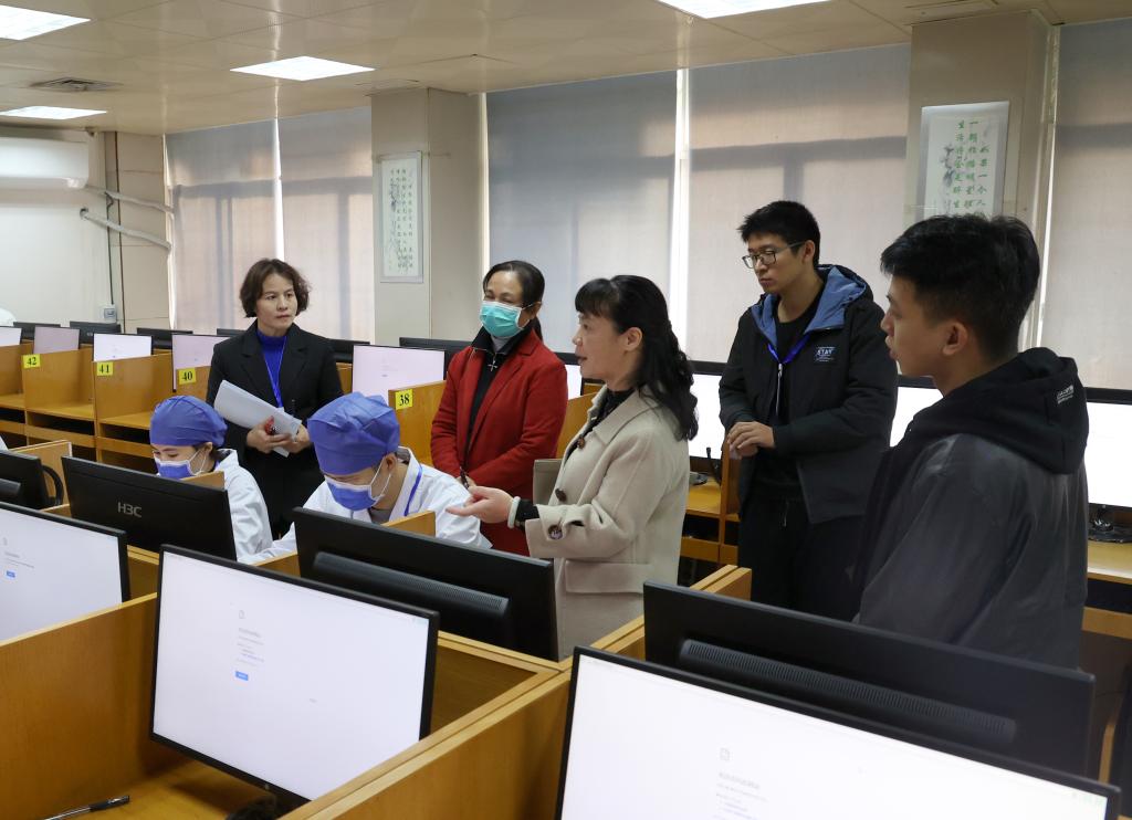 12月18日,广西考区医师资格考试评估专家组莅临鸭脖开展国家医师资格考试实践技能考试临床类别基地评估。图为专家组进行实地走访。