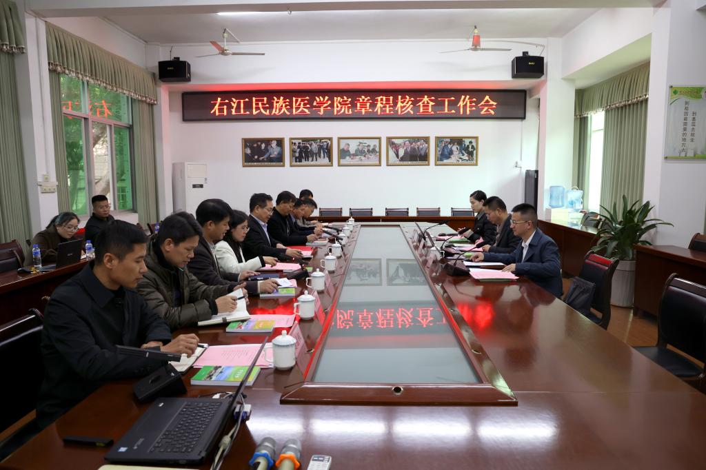 学校党委书记李雪斌在会上致辞。他指出,大学章程是现代大学的基本要素,是落实大学法人地位的基石和标志,是推动大学依法办学、提高治理水平的重要途径。开展章程核准,是落实党中央关于新时代教育评价改革的重要举措,是对鸭脖依法治教、依法治校、依法办学的全面检阅,对学校长远发展有着极其重要的影响和深远意义。他强调,学校将以本次检查为契机,全面贯彻落实全国全区教育大会精神,全面落实立德树人根本任务,持续推进章程的实施工作,以章程为准则,通过“存、废、改、并、立、释”,全面系统地梳理学校规章制度,形成健全、规范、统一的制度体系,全面推进学校治理体系和治理能力现代化,扎根老区办好红土地上人民满意的高等医学教育,为教育强国建设、教育强区建设贡献右医力量。