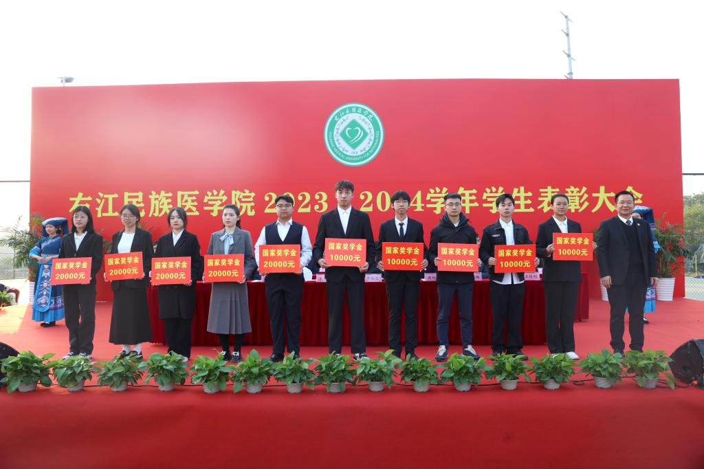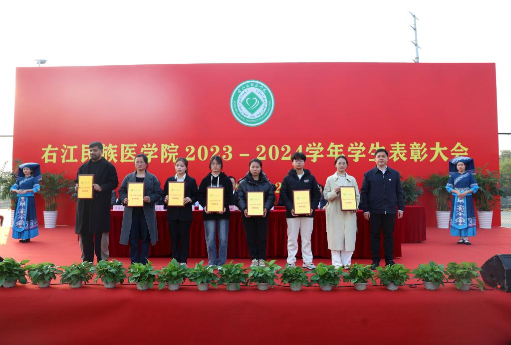 鲜衣怒马少年时,不负韶华行且知。12月24日下午,鸭脖在百东校区田径场隆重举办2023-2024学年学生表彰大会。学校领导李雪斌、黄龙坚、赵丽娟、周艳娥、冼季夏、解继胜、谭盛葵、王俊利,学校优秀校友、原南宁市第四人民医院院长、党委书记吴锋耀教授出席表彰大会。各二级学院、相关部门负责人,辅导员、班主任和学生代表参加大会。本次大会由学校党委副书记赵丽娟主持。