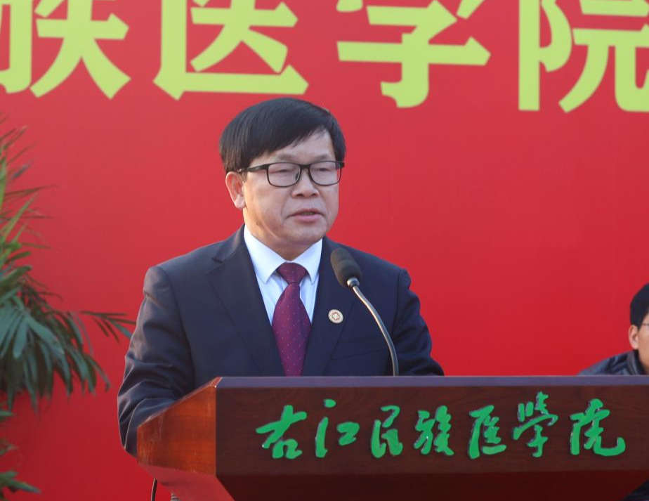 优秀校友吴锋耀在大会上发言,他表示,作为一名医务工作者,要有理想、有道德、有文化、守纪律,要用心、用情、有爱,让医学人文贯穿整个医疗护理过程,要弘扬白求恩精神,做一名有人文情怀的好医生。吴锋耀鼓励同学们要心怀梦想、守正创新、脚踏实地,秉承“大医精诚”校训,弘扬“艰苦创业、自强不息”的右医精神,从小事做起,从我做起,用心去做事,努力成为一名“下得去、用得上、留得住”的高级应用型医学人才,全心全意为人民健康服务。