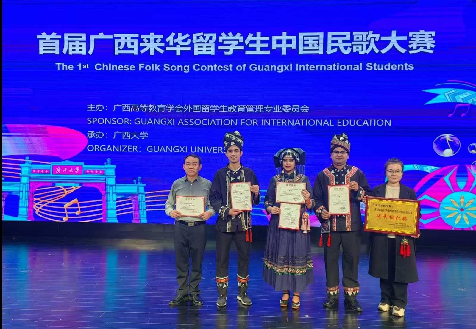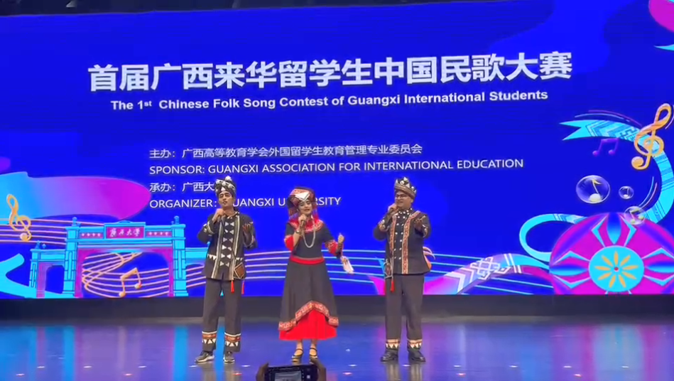 鸭脖留学生在首届广西来华留学生中国民歌大赛中获佳绩。