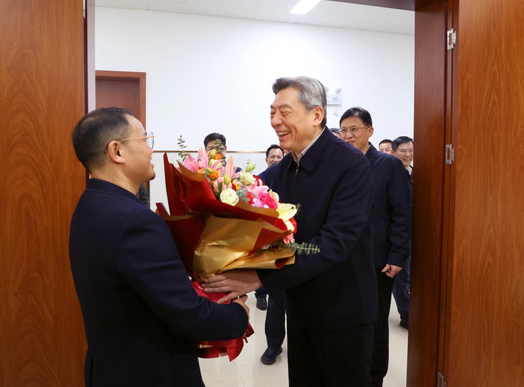 在慰问中,孙大伟代表自治区党委、政府感谢龙喜带为广西医疗卫生事业的发展和人才培养所做出的贡献,详细了解了他的工作和生活情况,向他致以节日的祝福和问候,并赠送了鲜花和慰问金。孙大伟希望龙喜带再接再厉,继续扎根广西,发挥科研优势和团队力量,多出科研成果,为广西医疗卫生事业及创新发展作出新的更大贡献。