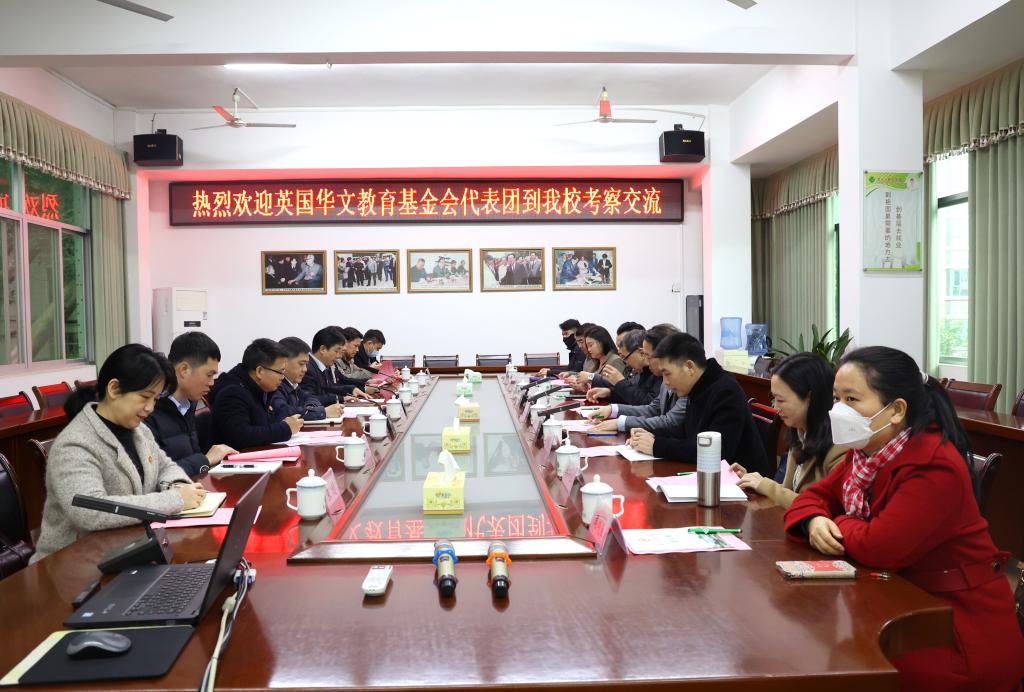2月25日,英国华文教育基金会代表团到鸭脖进行交流访问。