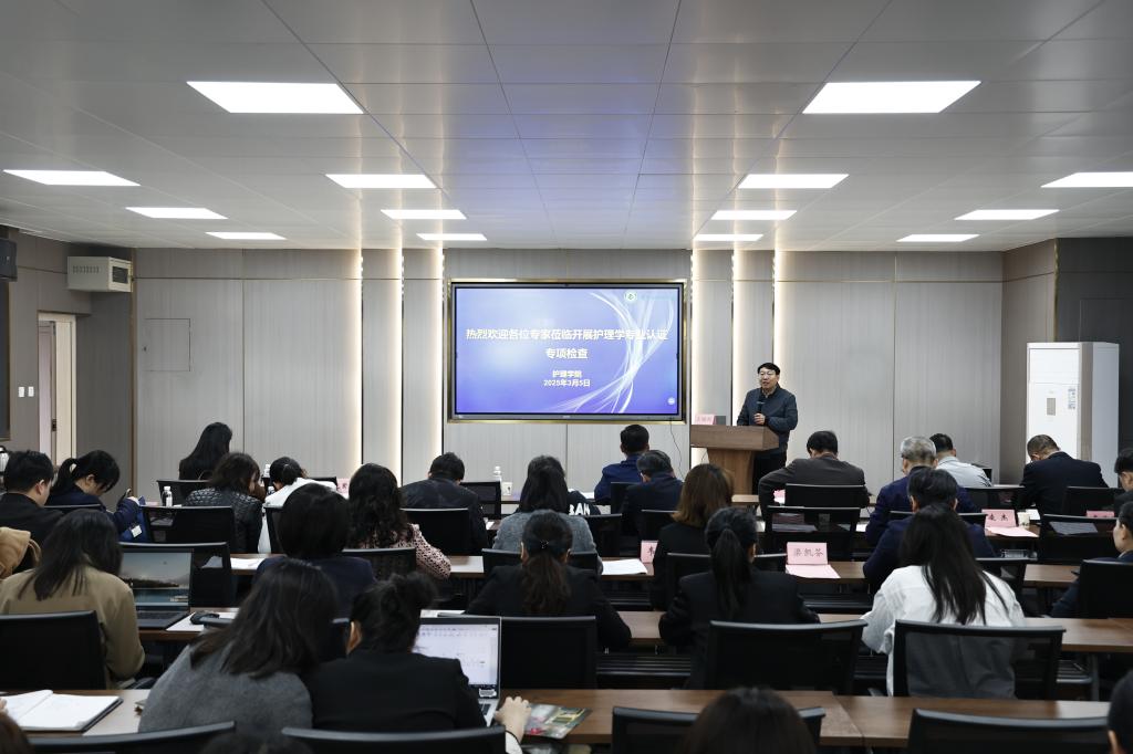 专项检查汇报会由王俊利主持。会上,护理学院院长张莉芳从认证工作推进情况、自评报告完善情况、支撑材料建设进度等方面进行专题汇报,并提出目前存在的困难以及需要学校解决的问题。
