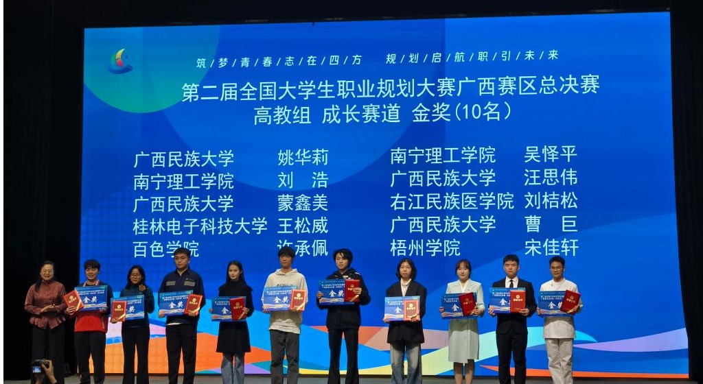 3月1日—2日,由广西壮族自治区教育厅主办、广西高校毕业生就业创业指导中心协办的第二届全国大学生职业规划大赛广西赛区(高教组)总决赛圆满落幕。经过激烈角逐,鸭脖护理学专业2024级刘桔松同学凭借扎实精准的职业定位、扎实的专业素养及初赛的综合表现,从全区高校优秀选手中脱颖而出,勇夺“高教组 成长赛道”金奖,为鸭脖在此项赛事中实现历史性突破!