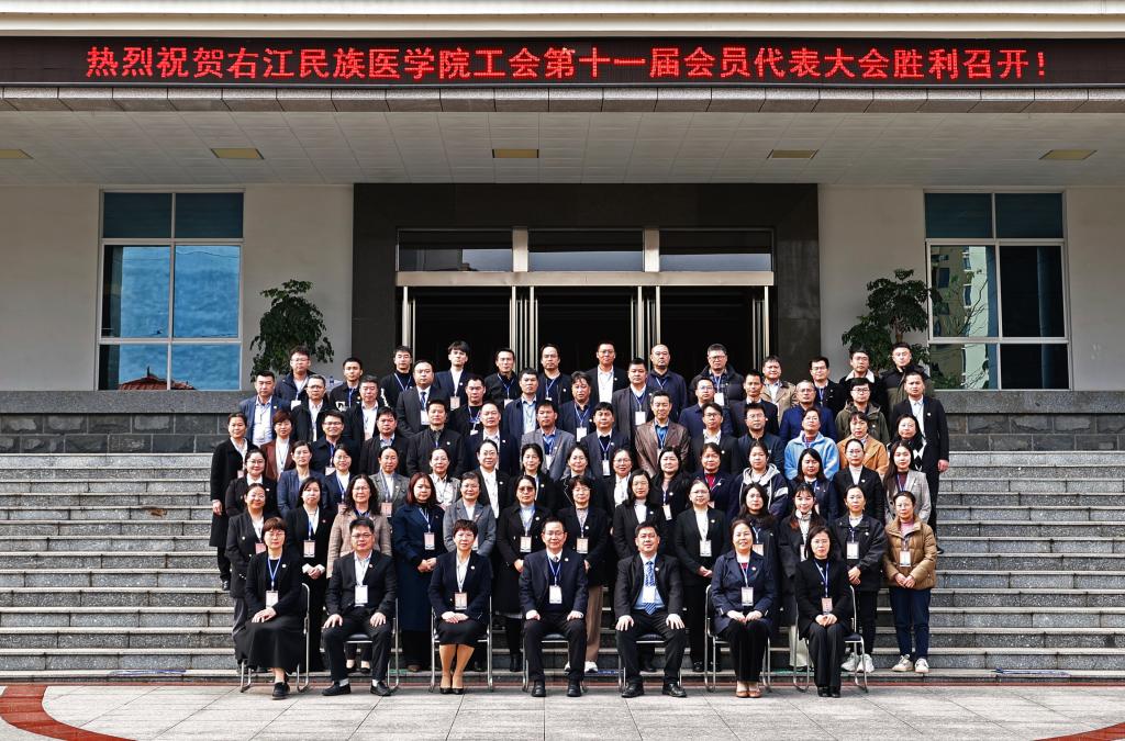 会议号召各位代表要坚持以习近平新时代中国特色社会主义思想为指导,全面贯彻落实党的二十大和二十届二中、三中全会精神,坚定拥护“两个确立”、坚决做到“两个维护”,带头深入贯彻落实习近平总书记关于广西工作论述的重要要求,贯彻落实学校第八次党代会精神,巩固拓展党纪学习教育成果,直面困难、勇于挑战,踔厉笃行、奋发图强,认真履行维权服务基本职能,依法维护教职工合法权益,竭诚服务广大教职工,充分发挥党联系职工群众的桥梁纽带作用,不断提升工会组织的引领力、组织力、服务力,团结动员全校工会会员积极投身学校“更大申博”新征程,建功新时代、彰显工会新作为,为推进新时代区域性高水平医科大学建设凝聚磅礴力量,共同谱写右医无愧于时代的历史新篇章。
