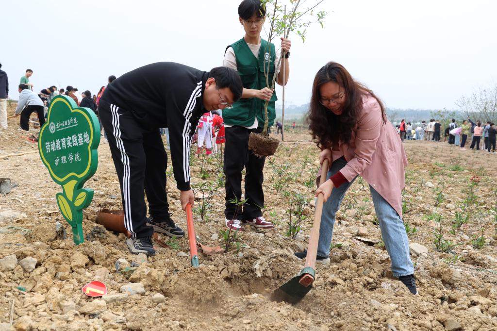 活动当日,微风轻拂。上午9时,学校党委书记李雪斌,党委副书记、校长黄龙坚等校领导来到植树现场,共同与师生们参加到植树活动中。