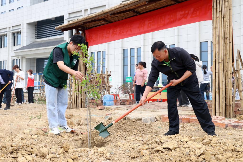 学校党委常委们接连种下了石榴树、桃树、三角梅等多棵树苗。