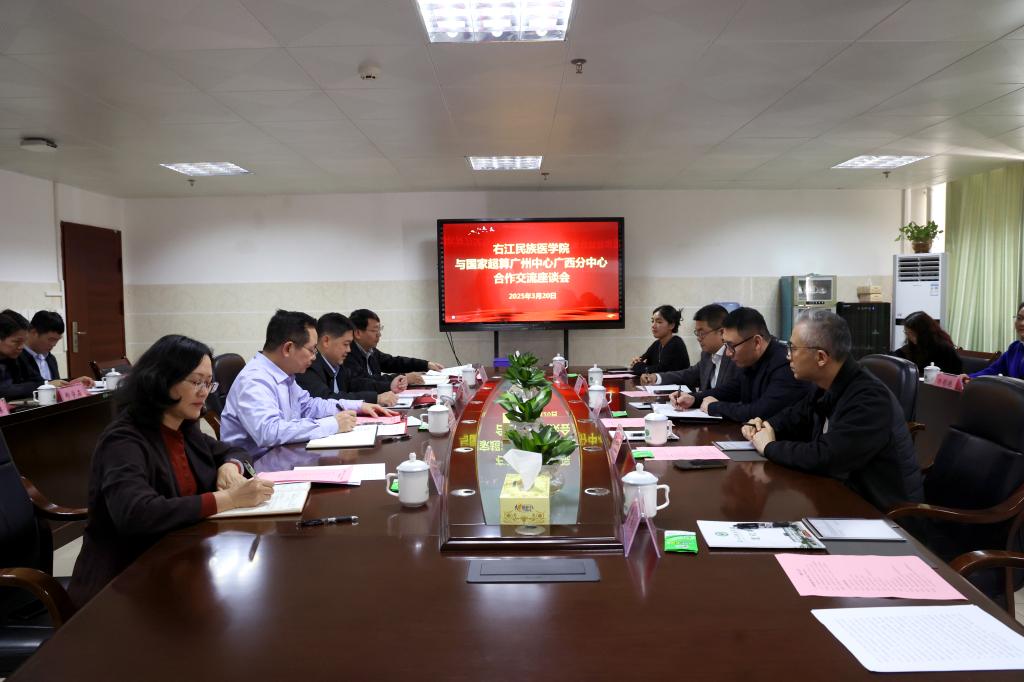 会上,国家超级计算广州中心广西分中心主任刘洋、副主任张晓东详细介绍了中心的技术实力、资源优势以及在推动跨领域合作方面的成功经验。发展规划处副处长庞广福汇报了鸭脖人工智能建设进展情况。与会同志围绕联合实验室共建、教培合作、附属医院AI应用等议题展开了深入交流,并达成初步共识。
