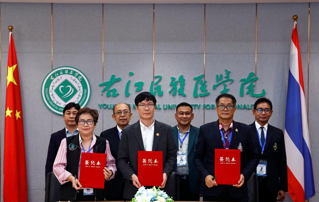交流会上,泰国中学校长代表与鸭脖代表签订合作交流备忘录并互赠纪念品。