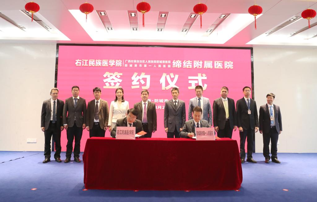 防城港市第一人民医院缔结成为YABO鸭脖官网附属医院,未来将有助于YABO鸭脖官网实现创建新时代区域性高水平医科大学目标和促进医院医教研高质量。