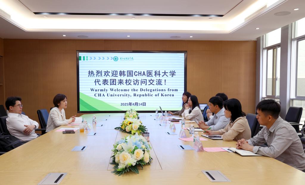 4月14日,韩国CHA医科大学代表团到鸭脖进行交流访问。