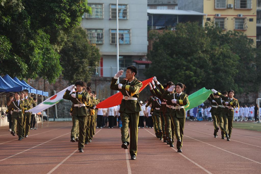 升旗仪式正式开始,全体肃立,奏唱中华人民共和国国歌。在庄严肃穆的国歌声中,全体师生齐声高唱,注视着国旗冉冉升起,炽热的爱国情怀在每个人的心中激荡,运动场上回荡着嘹亮的歌声,彰显右医人砥砺奋进的坚定信念。