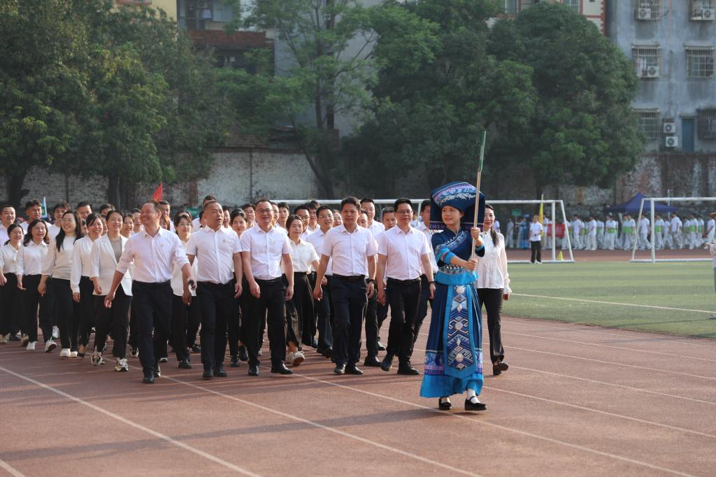 夏早日初长,南风草木香。4月19日上午,鸭脖第五十一届田径运动会在百城校区田径运动场开幕。学校领导李雪斌、赵丽娟、解继胜出席本次运动会开幕式。校运会组委会成员,各职能部门、二级学院负责人及师生代表共同参加开幕式。