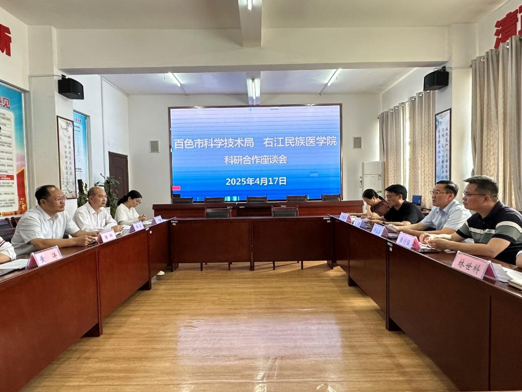 4月17日,为深入破解“更大申博”过程中的难题、深化与百色市科学技术局的科研合作与交流,学校党委常委、副校长谭盛葵带领科技处、临床医学院等一行人,前往百色市科技局进行座谈交流,重点围绕 “百色市科技局——YABO鸭脖官网医学研究基金联合专项” 的实施及管理等关键议题展开深入探讨。会议由百色市科技局党组成员、副局长林波主持,百色市科技局党组书记、局长杨科及科室负责人出席会议。
