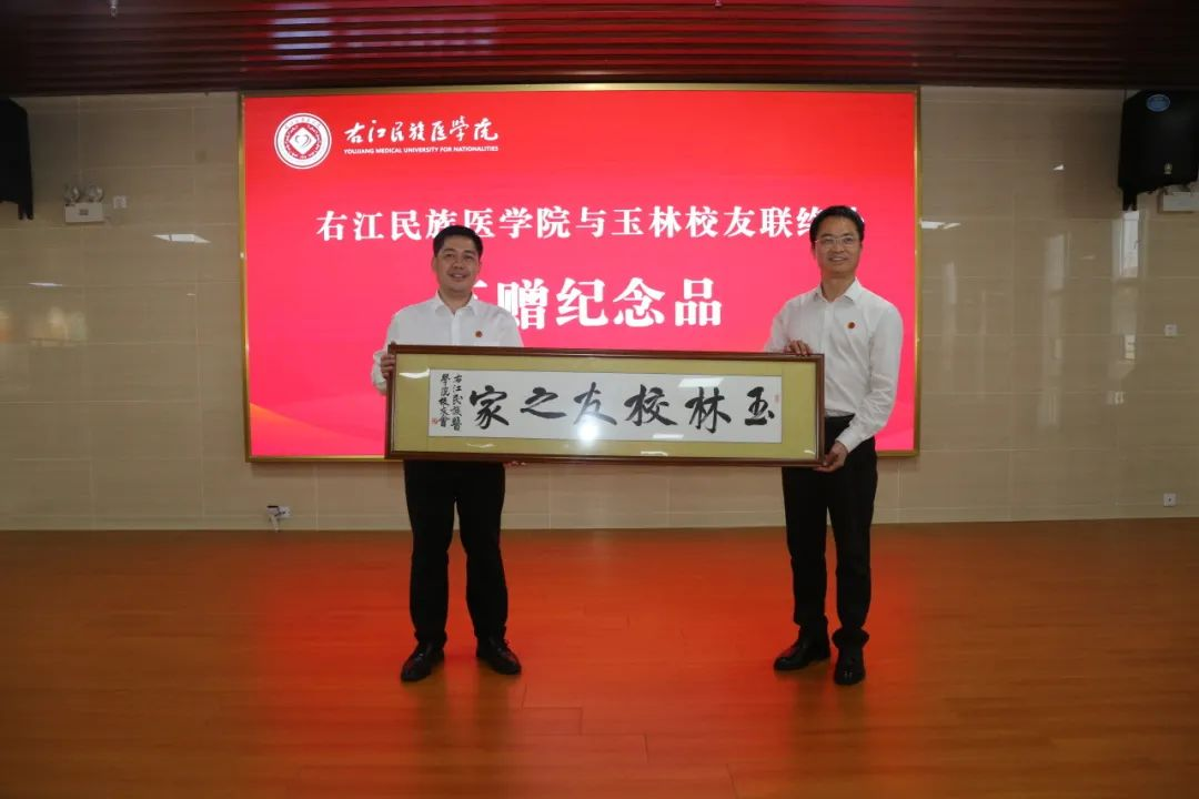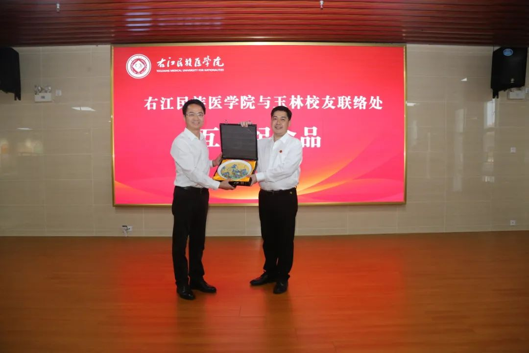 YABO鸭脖官网与玉林校友联络处互赠纪念品。