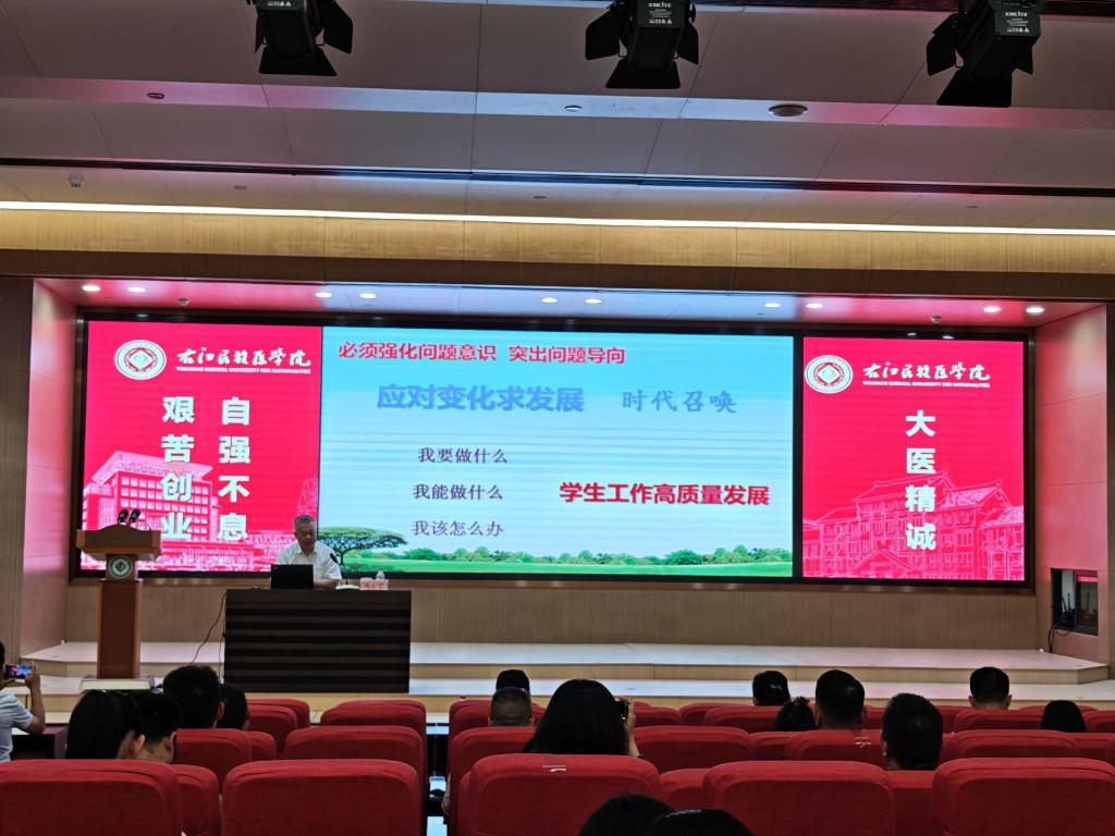 为全面贯彻习近平新时代中国特色社会主义思想,进一步落实立德树人根本任务,不断提升辅导员队伍的政治素养、业务能力和育人水平,6月5日,鸭脖在百城校区国际会议中心二楼报告厅举办2025年辅导员素质能力提升专题讲座。学生工作处全体成员、辅导员、班主任以及百色职业技术学院的辅导员共计70余人参与了此次培训,会议由学生工作处处长梁旭明主持。