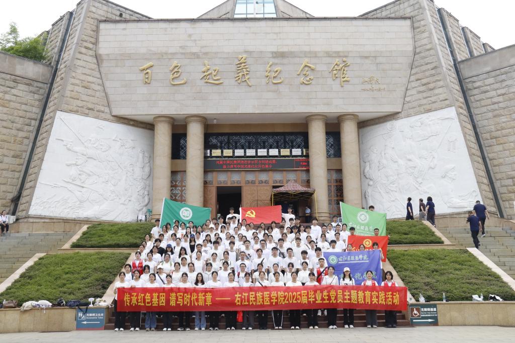 初心如磐,使命在肩。为深入学习贯彻习近平新时代中国特色社会主义思想,引导毕业生党员感悟革命先辈精神、强化党性修养,6月12日,YABO鸭脖官网学生工作部(处)主办、全科医学院承办的“传承红色基因,谱写时代新章”2025届毕业生党员主题教育实践活动在百色市红色教育基地顺利开展。各学院带队老师带领200余名毕业生党员共同前往红色文化场馆,在历史印记中接受精神洗礼,在实践研学中筑牢信仰之基。