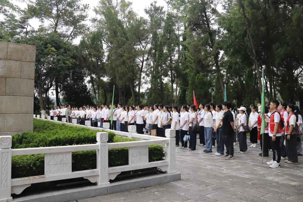 晨曦微露,毕业生党员在老师的带领下,队伍很快抵达中国工农红军第七军军部旧址——粤东会馆。青瓦木梁间,斑驳的砖墙记录着 1929 年百色起义前夕邓小平同志在此运筹帷幄的革命往事。当党员们戴着党徽走过粤东会馆的青石板路,誓言声与纪念碑的风铃声交织,红色基因已悄然融入他们的职业理想。