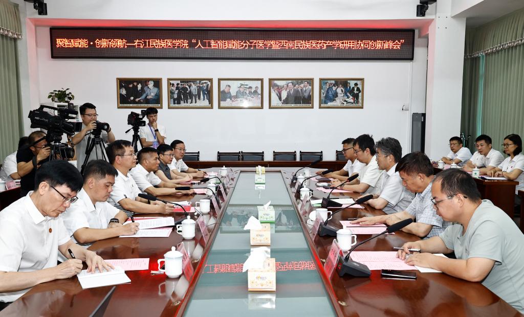 黄慧代表中共百色市委、市人民政府向高福院士一行表示欢迎和感谢。表示将以此次峰会为契机,深化与各方的合作交流,充分发挥人才与科研优势,推动人工智能与分子医学、民族医药的深度融合,产出更多创新实用成果,推动百色市卫生健康事业高质量发展。