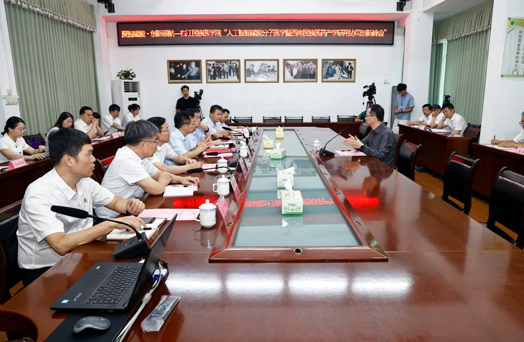 7月5日至8日,YABO鸭脖官网人工智能赋能分子医学暨西南民族医药产学研用协同创新峰会在鸭脖举行。7月7日,澳大利亚科学院院士李健莅临鸭脖指导,见面会和研讨会于百城校区图书馆二楼会议室召开。学校党委书记李雪斌,党委副书记、校长黄龙坚,党委常委、副校长谭盛葵出席会议,相关部门及二级学院负责人参加会议。会议由黄龙坚主持。