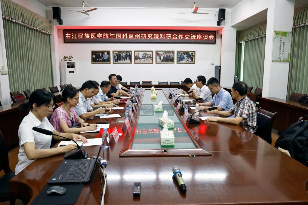 8月8日至9日,国科温州研究院副院长周云龙率专家团队到鸭脖进行交流指导。鸭脖在图书馆二楼会议室举行座谈会。党委常委、副校长谭盛葵出席会议并致辞,组织部、人事处、科技处、基础医学院、临床医学院、药学院等相关部门及二级学院负责人参加会议。
