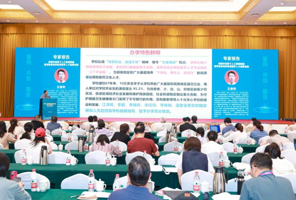 本次会议以“AI赋能医学教育,创新引领健康未来”为主题,来自全国16个省、自治区、直辖市38所院校的110余名医学教育专家齐聚一堂,分享联盟各高校的医学教育改革成果,共同擘画高等医学人才培养蓝图。王俊利受邀作为大会共同主席参加会议,并担任大会学术报告主持人。