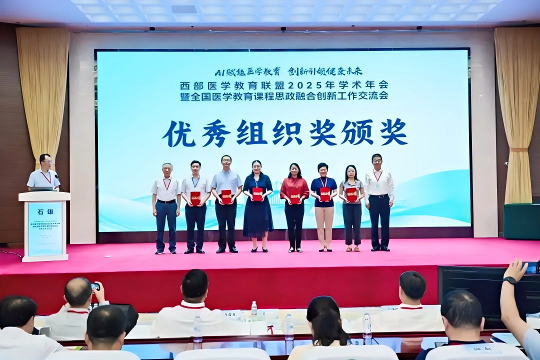 颁奖环节,共有16所医学院校的19篇论文被评为“西部医学教育联盟2025年学术年会优秀征文”,近百所院校的400份案例获得“首届医学教育课程思政案例大赛”奖。其中,一等奖20名、二等奖40名、三等奖80名、优秀奖260名、优秀组织单位10家。鸭脖共有12篇论文获优秀征文奖。其中,二等奖1名、三等奖1名、优秀奖10名,同时鸭脖获得优秀组织单位奖。