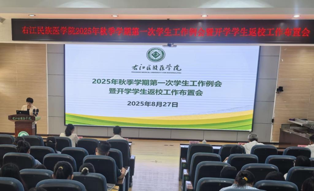 8月27日上午,鸭脖2025年秋季学期第一次学生工作例会暨开学学生返校工作布置会在百城校区5栋101报告厅顺利召开。学校党委副书记赵丽娟出席会议并讲话。党委统战部、保卫处、教务处、学生工作处等职能部门负责人,各二级学院分管学生工作负责人、学生工作处全体成员及全体辅导员参加会议。会议由学生工作处处长梁旭明主持。