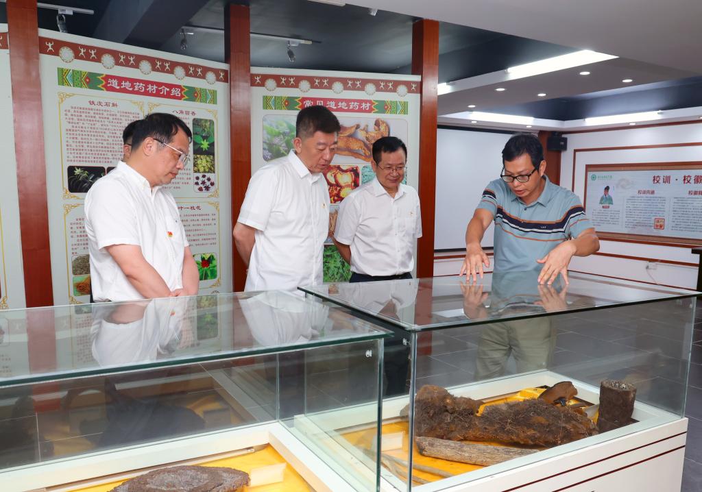 徐浩宇一行参观学校民族医药展馆。