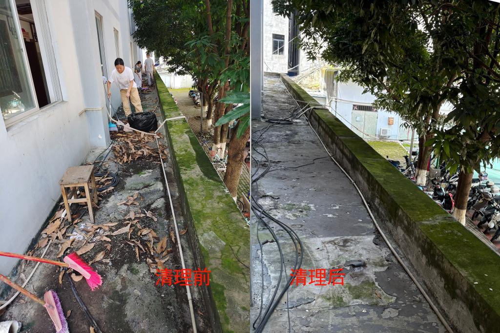 本次工作以党支部为单位,划分责任区域,开展“网格化”排查清理活动。以“清积水、灭成蚊、防叮咬”工作重点,从教学区、办公区、教职工生活区、学生宿舍区、食堂等人员密集场所,到屋顶平台、地下室、绿化带杂草丛、实验楼周边等易被忽视角落进行全面排查,清除各类积水容器、生活垃圾及杂草,从源头切断蚊虫孳生链条;在实验楼周边区域,还安排专业人员对废旧试剂瓶、破损仪器等特殊垃圾进行规范分类处置,严防残留积水形成孳生地,确保消杀无死角。