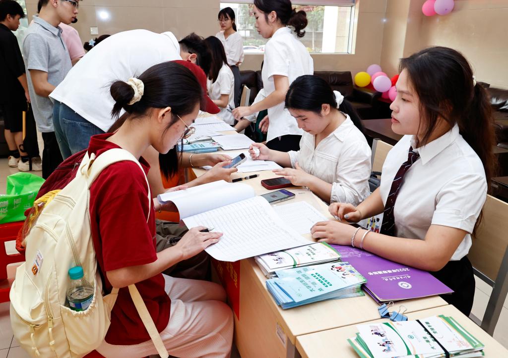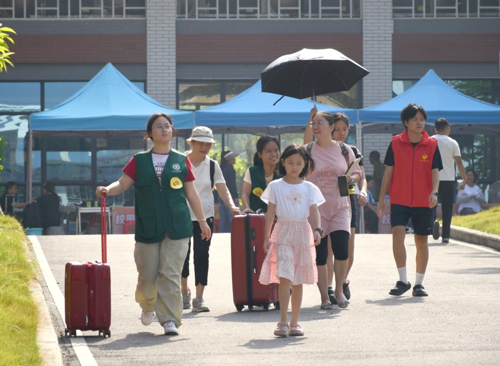 身着绿色马甲的志愿者们忙碌而有序,他们的身影穿梭于校园,主动帮扛行李、引路导航,用热情和行动让远道而来的新生与家长感受到右医大家庭的温暖。