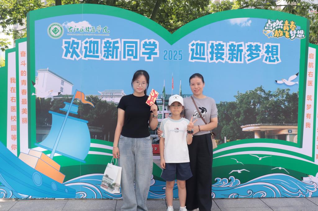 与此同时,来自柳州的梁同学也有着来自家乡和亲人的祝福。家人特别准备的红包和桃叶,这是她们家乡的传统,也成为新环境中的特别礼物。红包象征着一切顺利,学业有成,桃叶则为了祝福远离病痛、平安健康。梁同学笑着说道:“这是离家上大学的第一个‘仪式感’”,她也将带着这份温暖与期许,开启大学新旅程。