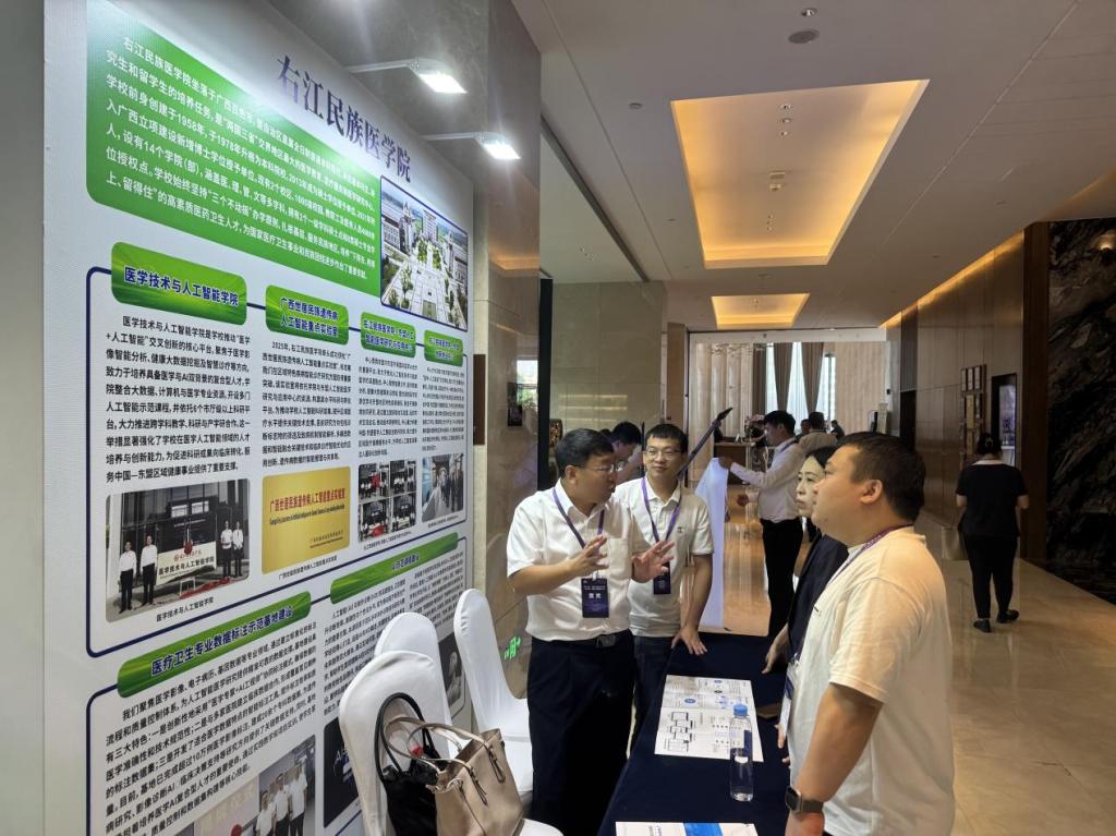 本次展示会汇聚了华为、阿里、百度等知名企业及多所高校,通过成果展示与精准对接,为推动人工智能与教育教学改革、产教融合项目及高素质技术技能人才培养提供了重要平台。王俊利表示:“学校始终坚持扎根基层、服务民族地区的办学宗旨,在医学人工智能领域取得了显著进展。通过此次展会,我们期待与更多东盟国家和国内兄弟院校开展合作,共同推动人工智能技术在医学教育和医疗服务的创新应用。”