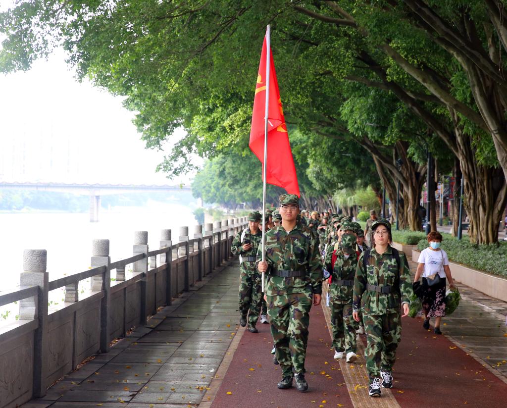 9月23日上午,鸭脖举行2025级新生军训拉练活动。
