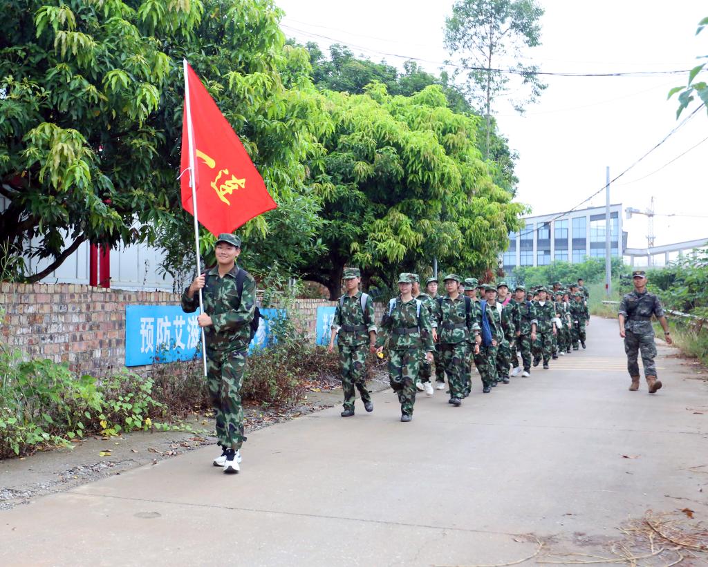百城校区拉练队伍正在行进。